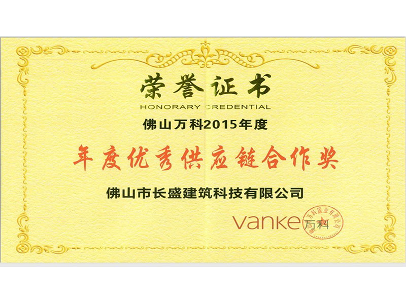 佛山萬科2015年度年度優(yōu)秀供應(yīng)鏈合作獎